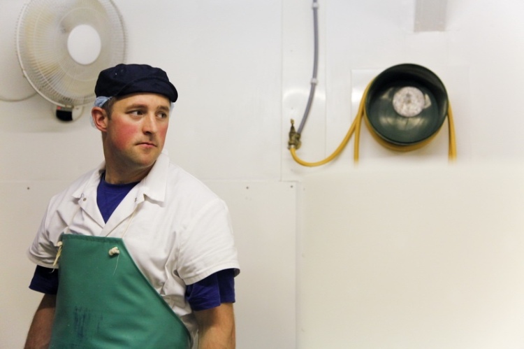 Ben actually working really hard – making cheese, sampling, and training staff at The Courtyard Dairy.