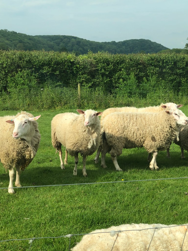 The picture on the right is the sheep out grazing on pasture at Burton Dairy Farm, which is run by Tom and Helen Garland. It’s great that you get to see them along the drive when collecting milk. They go out and graze as long as the weather is not too bad.