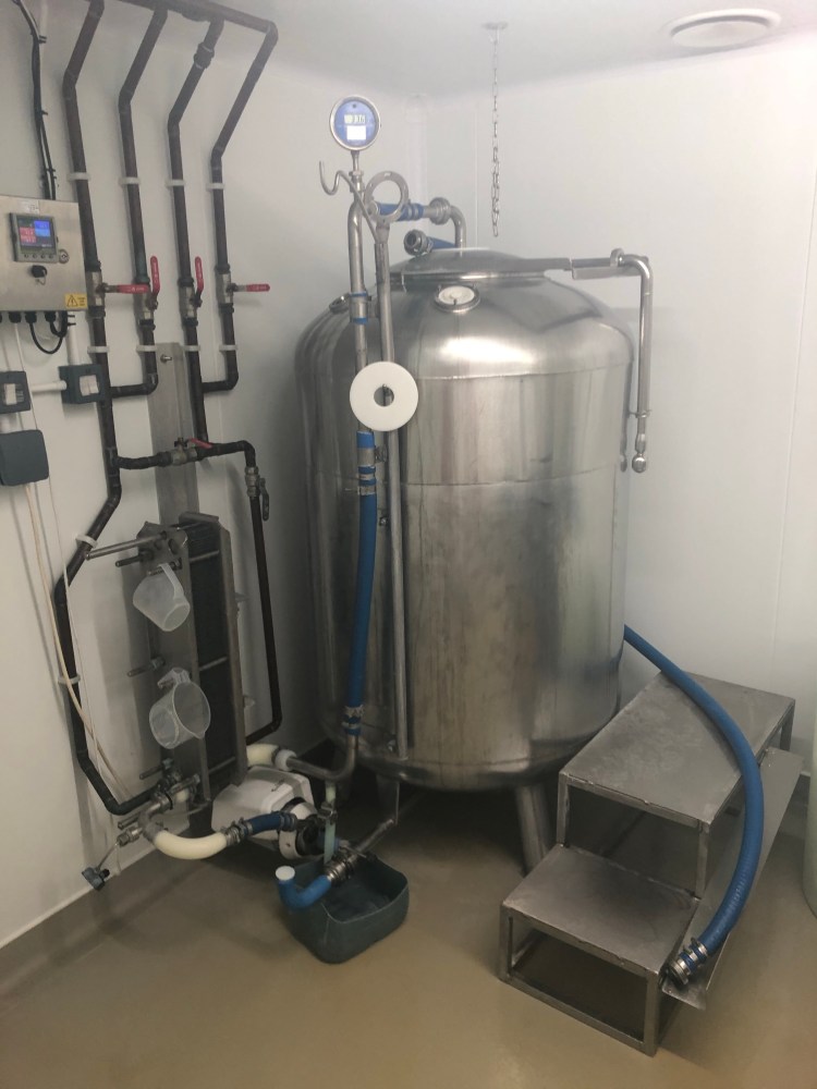 Once the milk is ready we cool it in preparation to go next-door into our vats.